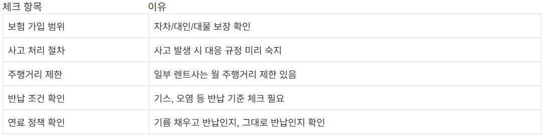 - 🚗 차량 소유 부담 없음 (보험, 세금, 수리 비용 걱정 X)