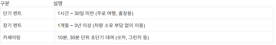 - 🚗 차량 소유 부담 없음 (보험, 세금, 수리 비용 걱정 X)