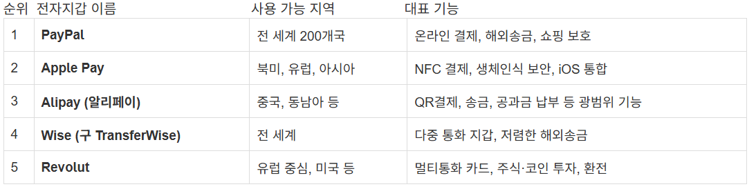 3. TOP 5 글로벌 전자지갑 소개